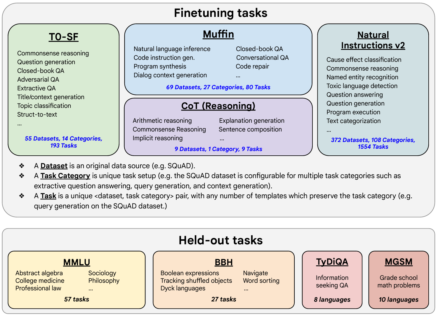 Notice the “held out” tasks in the above image. “Some tasks were held-out during training, and they were later used to evaluate the model’s performance on unseen tasks.”