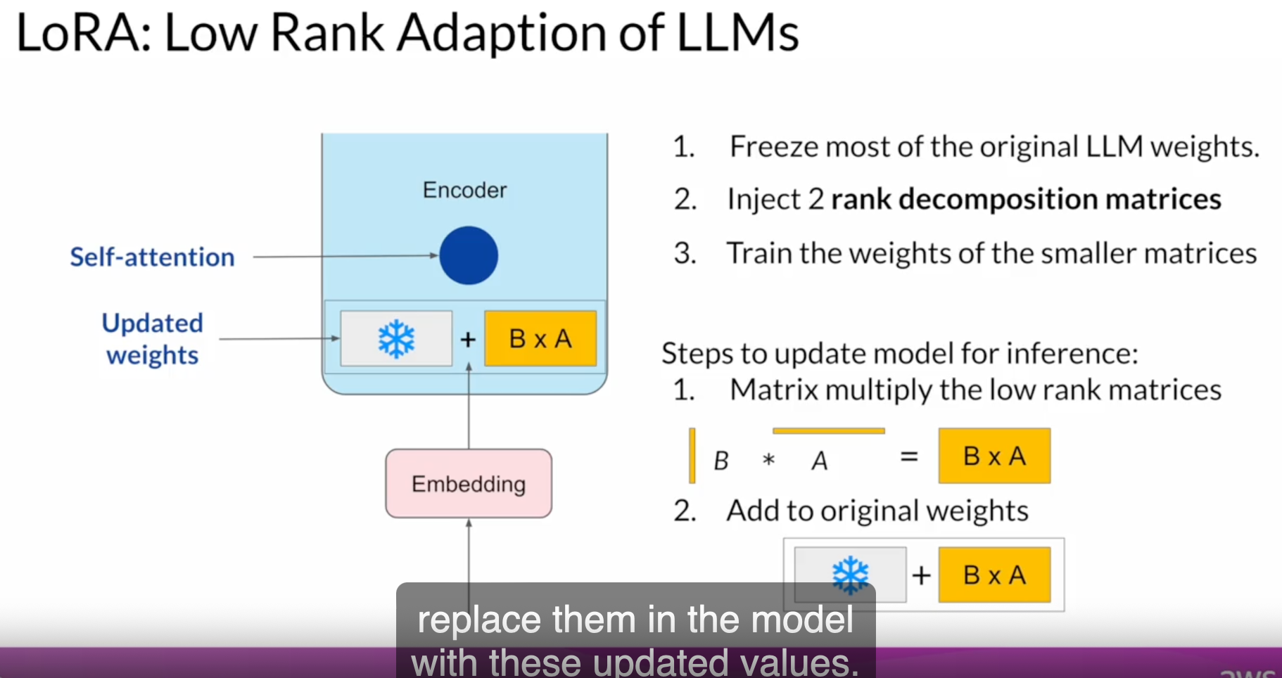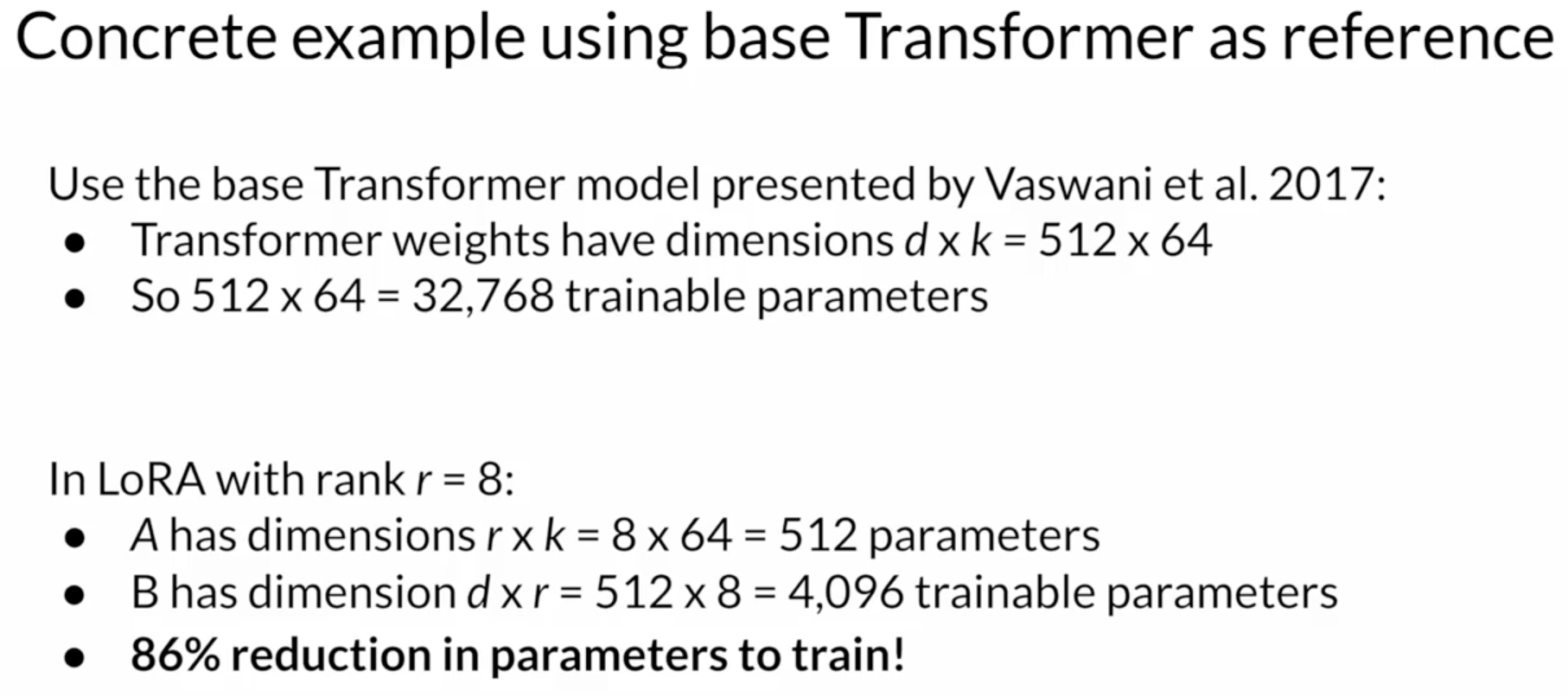 - reparametrization - LORA - work with original paramters but create new LOw-RAnked parameters of the network weight.